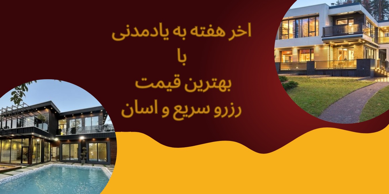 از ویلا استخر دار تا بومگردی با کردان24 جات جوره! اقامتگاه ای اختصاصی در کردان کلبه شیک نشارود ثمین شناسه : 1212 رزرو آنی مازندران- نشتارود 600,000 تومان / هرشب ویلا یک خوابه قوی رامسر شناسه : 1200 رامسر- مازندران 950,000 تومان / هرشب بوم گردی کلبه چوبی رامسر شناسه : 1227 رامسر- مازندران 1,000,000 تومان / هرشب کلبه چوبی آپادانا یک رامسر شناسه : 1222 رزرو آنی مازندران- نکا 850,000 تومان / هرشب کلبه سوئیسی رامش رامسر شناسه : 1224 رزرو آنی مازندران- نمک آبرود 500,000 تومان / هرشب سوئیت ساحلی شیک شناسه : 1209 رزرو آنی رامسر- مازندران 765,000 تومان / هرشب کلبه چوبی نیما بهشهر شناسه : 1218 رزرو آنی بهشهر- مازندران 900,000 تومان / هرشب ویلا دوخوابه شناسه : 1196 رزرو آنی چالوس 499,000 تومان / هرشب ویلای مجلل رودبار کردان شناسه : 1198 رزرو آنی مازندران- نوشهر 1,494,000 تومان / هرشب گلزار البرز- کرج 1,000 تومان / هرشب کوی مهر کرج 1,000 تومان / هرشب ویلا استخر دار نیوشا کردان البرز- کردان 14 درصد تخفیف 1,650,000 1,419,000 تومان / هرشب ویلا استخر دار دوخواب داریوش کردان البرز- کردان 997,000 تومان / هرشب ویلا استخر دار آبگرم شایان کردان البرز- کردان 3,000,000 تومان / هرشب ویلا سه خوابه استخردار بیتوته کردان البرز- کردان 2,700,000 تومان / هرشب ویلا استخر دار نادیان البرز- کردان 1,700,000 تومان / هرشب هاستل شماره یک اصفهان اصفهان- اصفهان 642,000 تومان / هرشب هاستل دیبا سریر یزد- یزد 196,000 تومان / هرشب هاستل ریما اصفهان- اصفهان 480,000 تومان / هرشب بوم گردی کلبه چوبی رامسر رامسر- مازندران 1,000,000 تومان / هرشب کلبه سوئیسی رامش رامسر مازندران- نمک آبرود 500,000 تومان / هرشب کلبه چوبی آپادانا یک رامسر مازندران- نکا 850,000 تومان / هرشب کلبه مراکشی سایبان فیروزکوه تهران- فیروزکوه 1,200,000 تومان / هرشب کلبه چوبی نیما بهشهر بهشهر- مازندران 900,000 تومان / هرشب کلبه شیک نشارود ثمین مازندران- نشتارود 600,000 تومان / هرشب سوئیت ساحلی شیک رامسر- مازندران 765,000 تومان / هرشب ویلا استخر دار جایتو کردان البرز- کردان 1,350,000 تومان / هرشب ویلا یک خوابه قوی رامسر رامسر- مازندران 950,000 تومان / هرشب ویلای مجلل رودبار کردان مازندران- نوشهر 1,494,000 تومان / هرشب ویلا دوخوابه چالوس 499,000 تومان / هرشب اقامتگاه اختصاصی درنا رشت رشت 1,100,000 تومان / هرشب نمایش بیشتر بومگردی بومگردی سوییت کلبه ویلا و آپارتمان آپارتمان,ویلا تجربه گردشگری (جدید)
